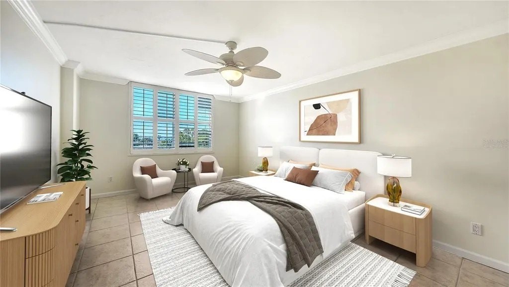 THE BEST CONDOMINIUM VALUE IN THE HEART OF DOWNTOWN SARASOTA, THIS FULL BAY AND SUNSET VIEW UNIT IS PRICED TO SELL! Soak in the sweeping views of the Sarasota Bayfront from this beautifully situated 5th floor, 1-bedroom, 2-full bath residence at The 101 Condominium featuring a great floor plan and spacious bayfront terrace perfect for savoring balmy breezes, breathtaking sunsets, and the lively cityscape. Just a stones throw away from Marina Jack, residents enjoy immediate access to deep-water docking, waterfront dining, and the ultimate boating lifestyle. This light-filled unit has just been completely repainted and is ready for to you enjoy the eat-in kitchen with pass-through to the dining area, a gracious living room, a restful primary suite with ensuite bath and walk-in closet, and a convenient 2nd bath. Enjoy peaceful water views from nearly every room, easy-care ceramic tile flooring throughout, and a brand-new A/C unit for year-round comfort. The 101 Condominium is a premier downtown residence that recently completed an impressive $8 million modernization, including hurricane-rated sliding doors and windows in all units, a newly designed lobby, and extensive structural upgrades. Residents enjoy a rich array of resort-style amenities: heated swimming pool with grill area, state-of-the-art gym and yoga room, library and movie theater, social room, and attentive concierge and on-site maintenance staff. Directly out the back entrance of the property is historic Palm Avenue, lined with art galleries, charming boutiques, and inviting restaurants. And a block away is Main Street for even more dining and nightlife options. Ideally located just minutes from the world-renowned beaches of Lido Key, Longboat Key, and Siesta Key, this residence offers effortless access to Sarasota's most celebrated coastal destinations. This is downtown Sarasota living at it's best!